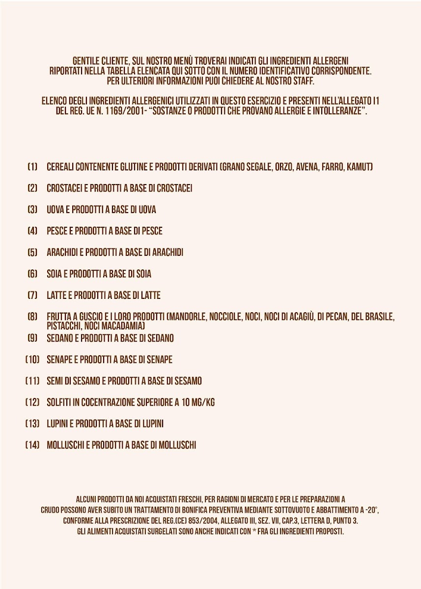 La bottega di Camilla Menu